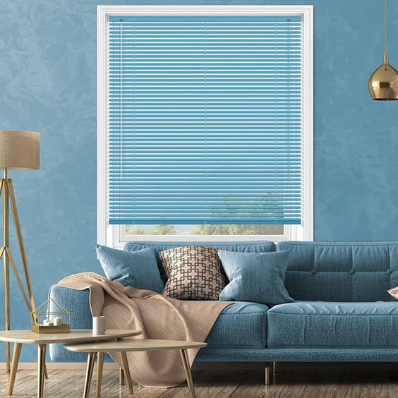 آبی رنگی تسکین دهنده بوده و برای کاهش فشار خون و سطح استرس موثر شناخته شده است. این رنگ اغلب با راحتی همراه است و آن را برای اتاق خواب و حمام ایده آل می کند. هنگامی که در اتاق خواب پرده های آبی استفاده می شوند، حس آرامش و خواب را القا می کنند.